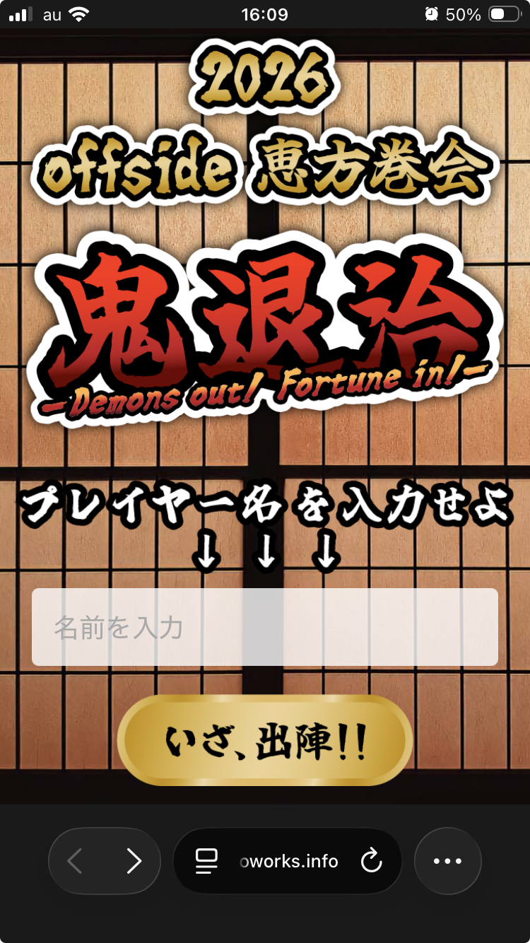 プレーヤー名を打ち込んで、鬼退治ゲームスタート!