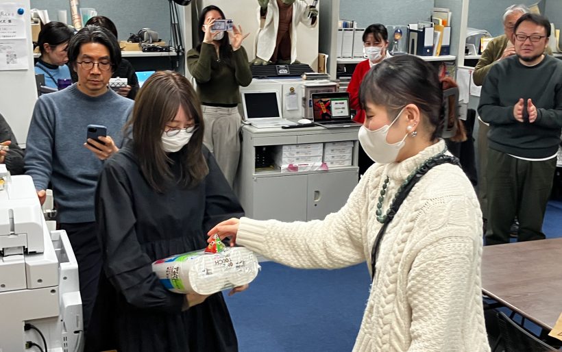 例年、鬼は前年のゲームの優勝者と決まっていますが、昨年は節分が休日というイレギュラーで賞品受賞者が3名となり、今回は、河合、伊藤、関根の3名が「鬼滅女子隊」を結成、会に望む事となりました!