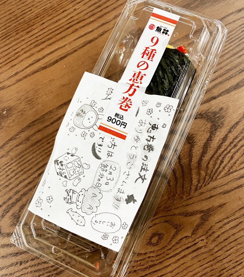 今年の恵方巻は、似顔絵倶楽部ご紹介の名駅「魚丼」さん。